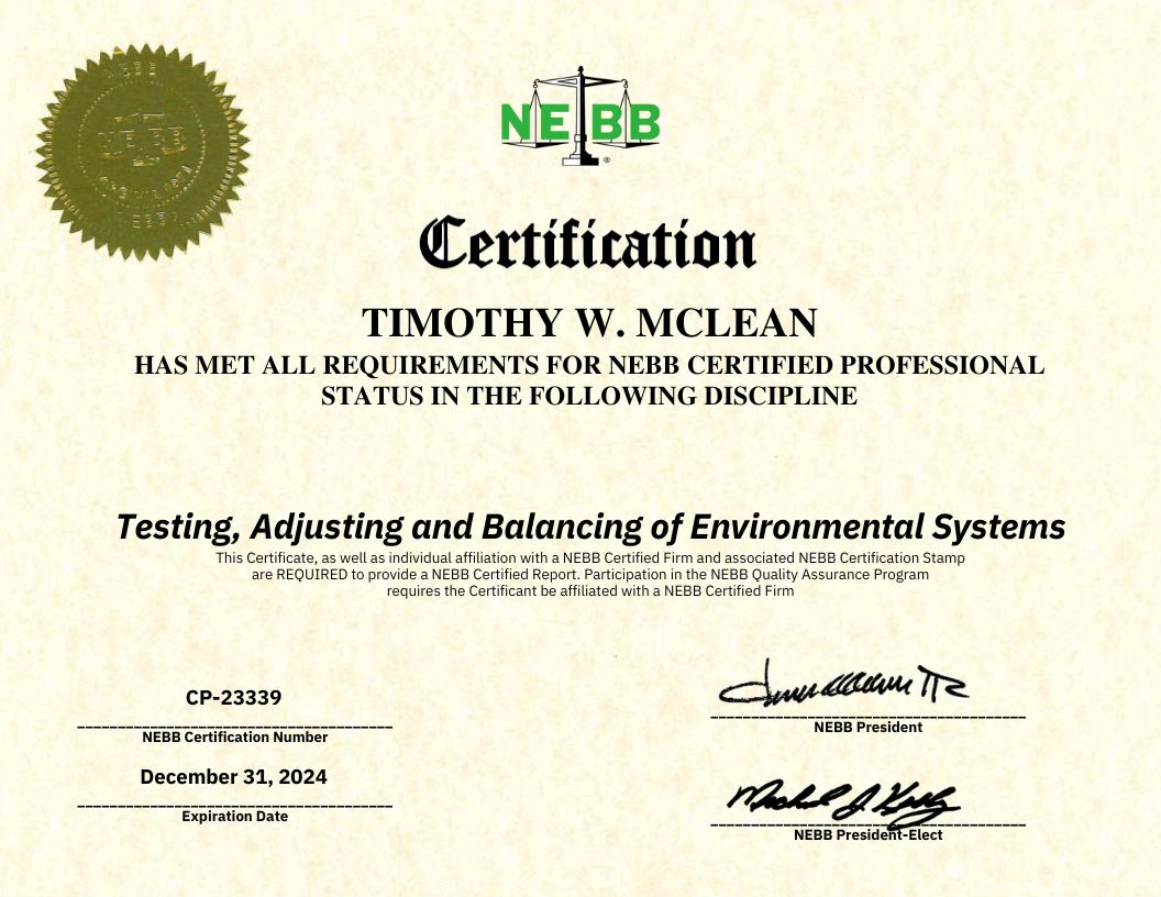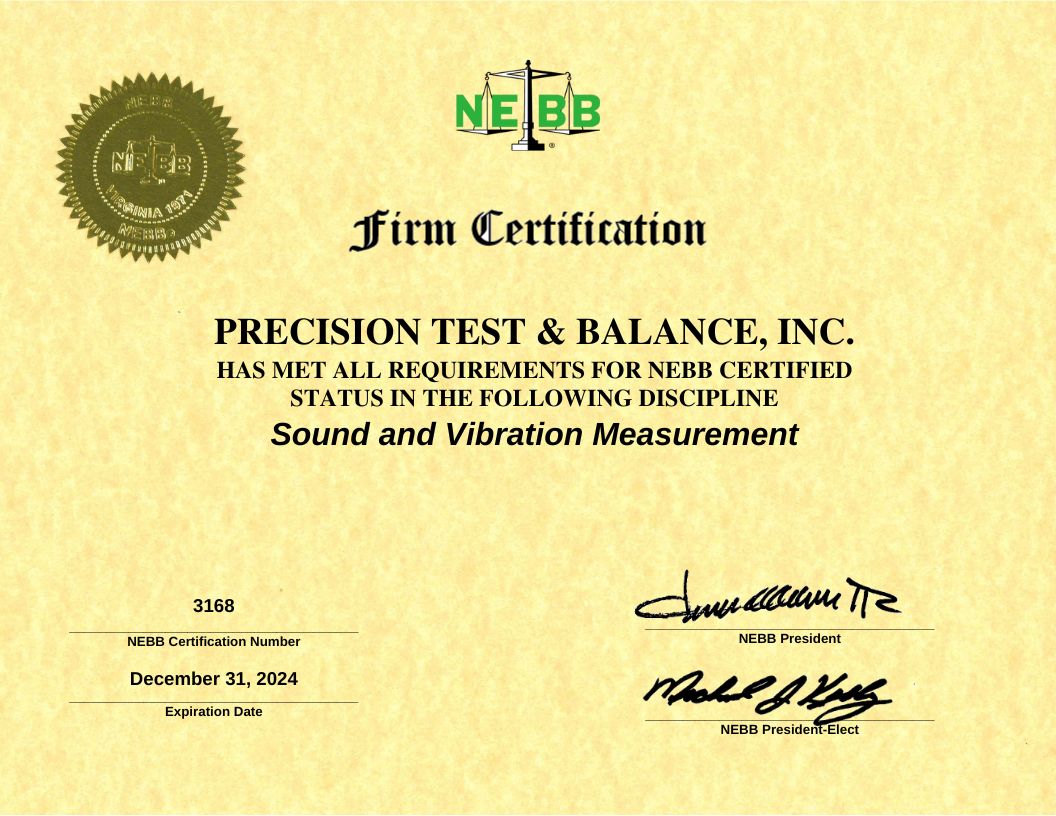 Precision Test & Balance, INC Certificates Precision Test & Balance Sound/VibrationPrecision Test & Balance TABPrecision Test & Balance Whole Building Ron Matthews Certificates Ron Matthews TABB SupervisorRon Matthews Vibration MeasurementRon Matthews TABRon Matthews Whole BuildingRon Matthews Sound Measurement Timothy McLean Certificates Timothy McLean TABTimothy McLean SoundTimothy McLean VibrationTimothy McLean Whole Building Bryon Hunt Certificates Bryon Hunt TAB